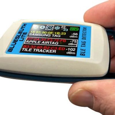 BlueSleuth-Lite detects the BLE advertising signal emitted by AirTags. Detection may vary depending on tracker firmware.